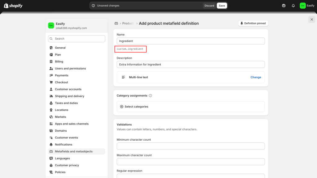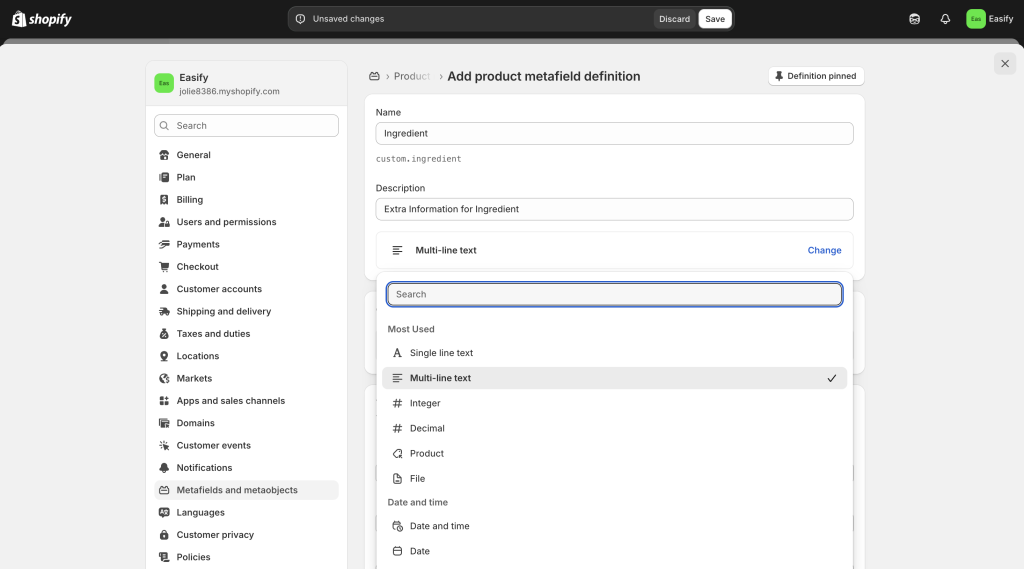 Step 3: Create the Metafield Definition