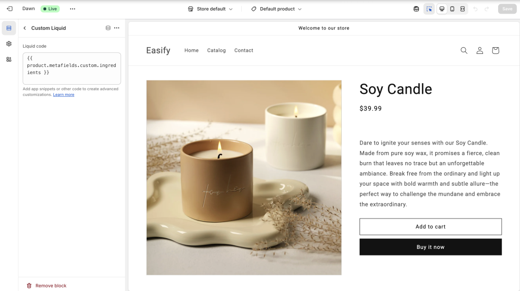 Step 5: Add the Metafield to Your Product Page (Theme Editor)