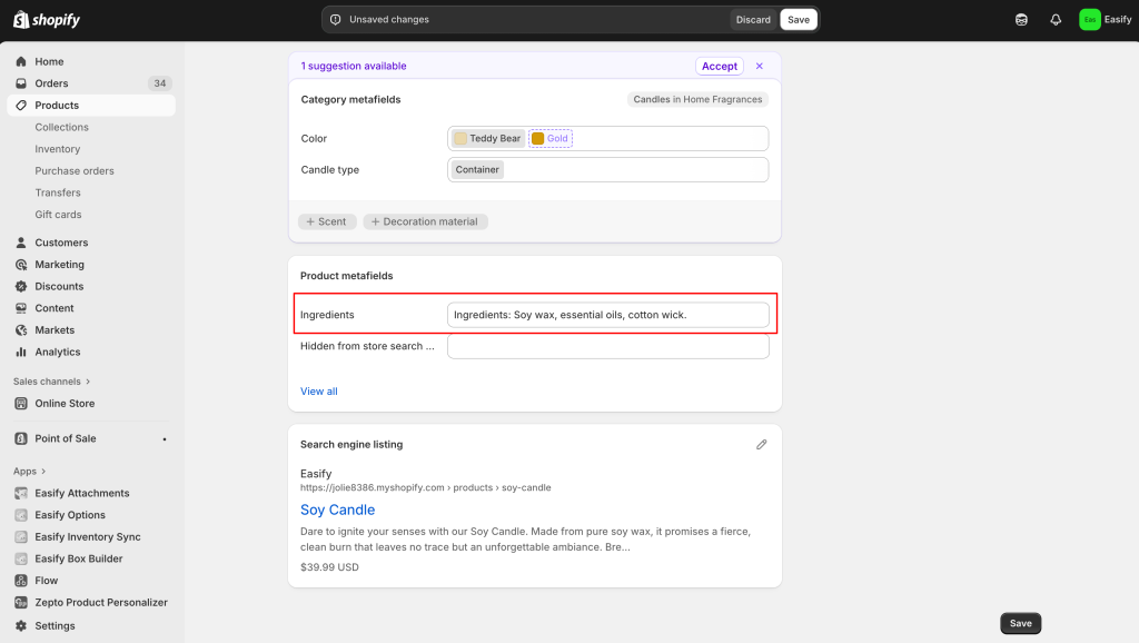 Adding these sections helps your product pages look cleaner and makes it easier for customers to find the information they need. In this guide, Easify’ll show you different ways to add an extra description to your Shopify store, whether through metafields or third-party apps.