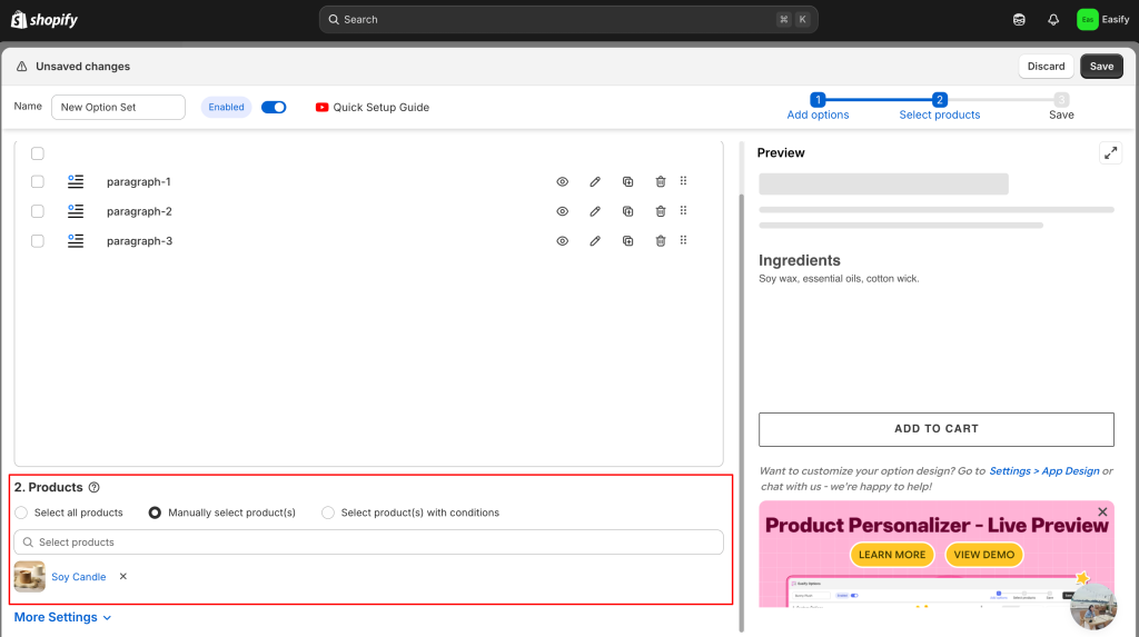 Method #2: Using Easify Product Options App