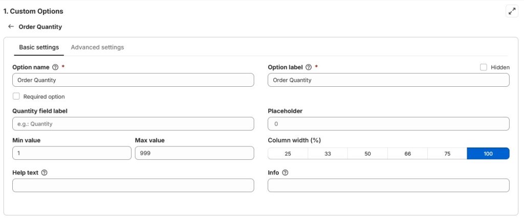 - Option Name – Appears in cart, checkout, and order details. Use a clear and meaningful name.