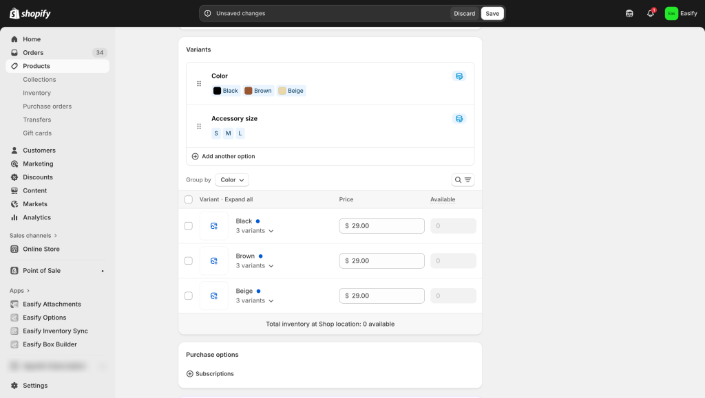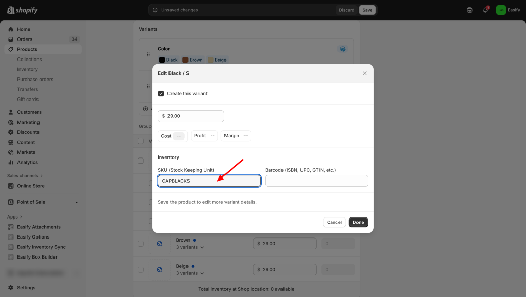 In this guide, Easify’ll walk you through how to add SKUs to your Shopify variants step-by-step. It’s simple, quick, and incredibly helpful — especially if you offer products with multiple sizes, colors, or styles. Let’s get your products fully organized and SKU-ready.