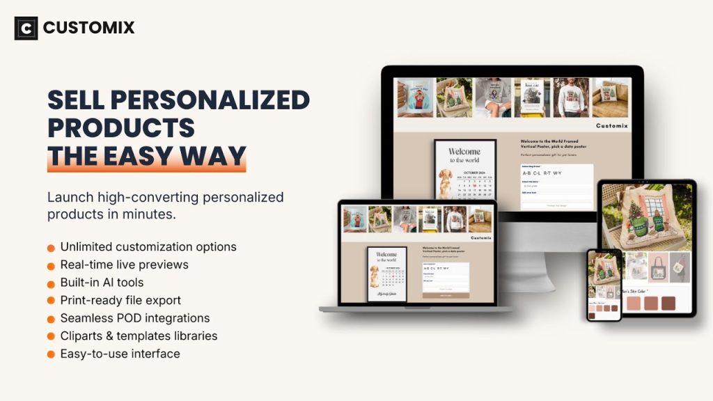 Customix Product Personalizer focuses on making product customization not just easy to set up—but scalable, especially for print-on-demand businesses.