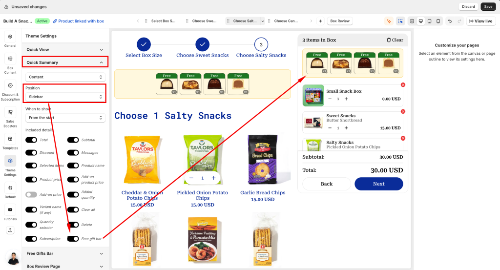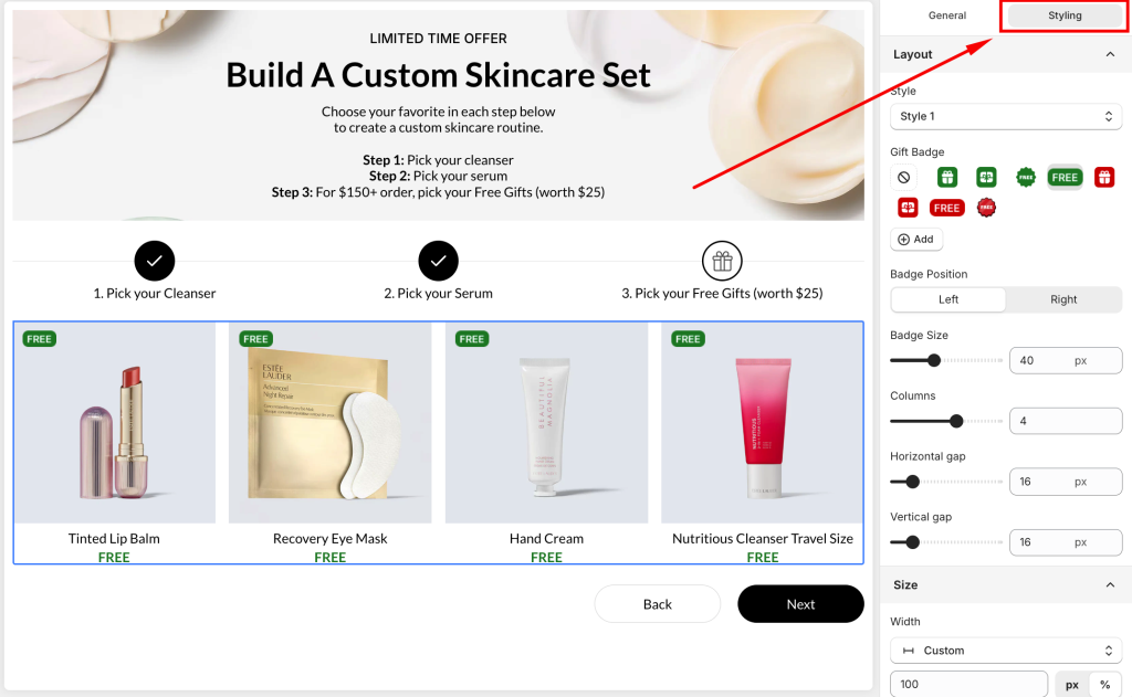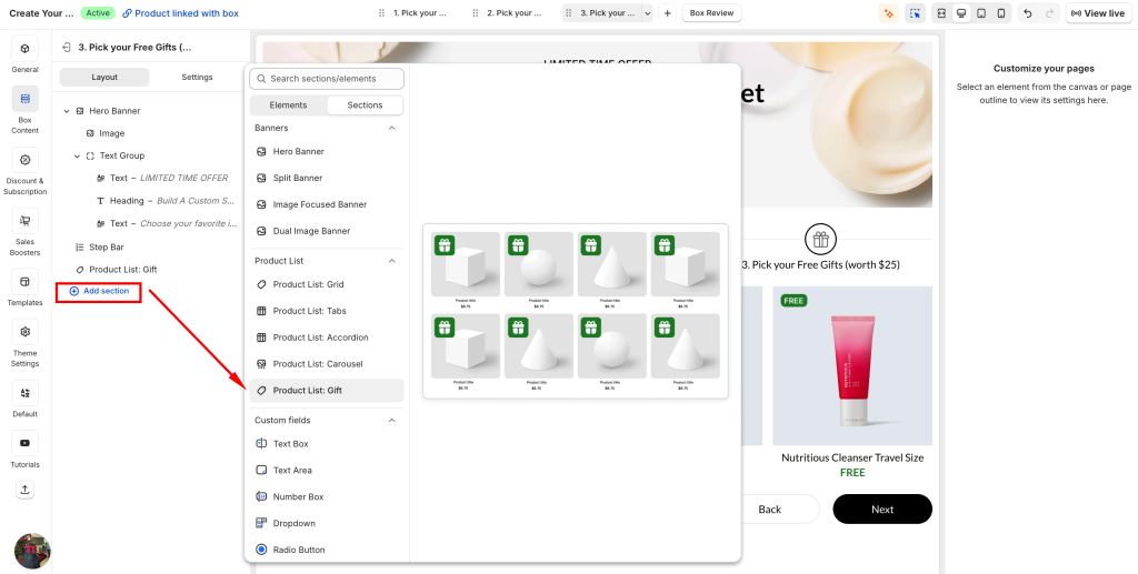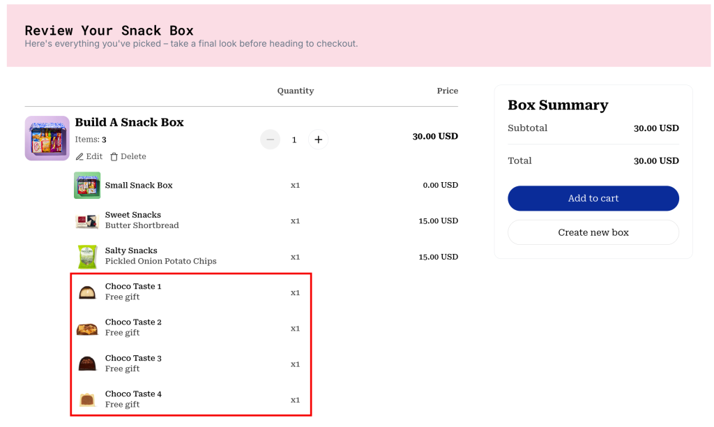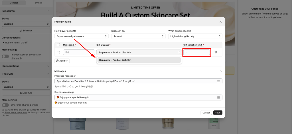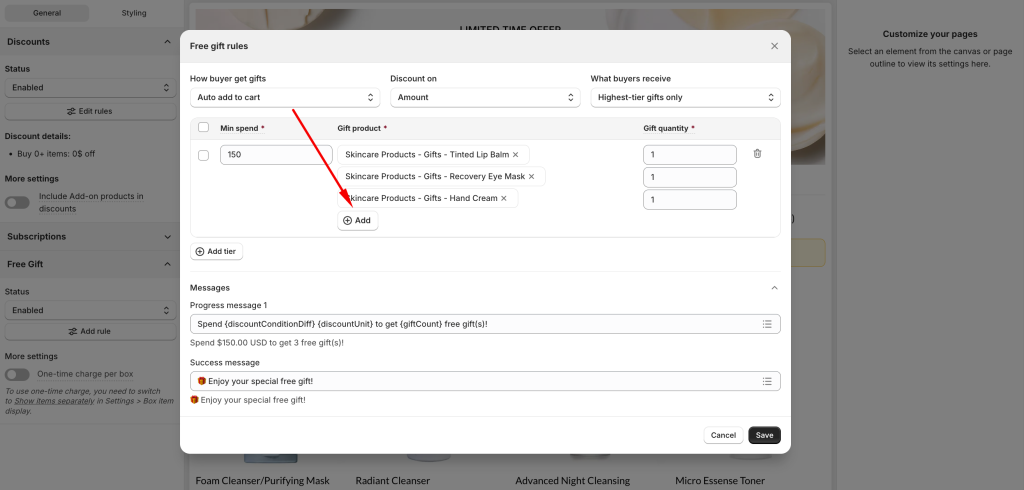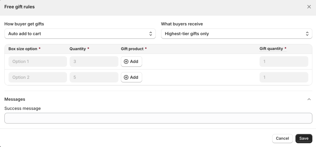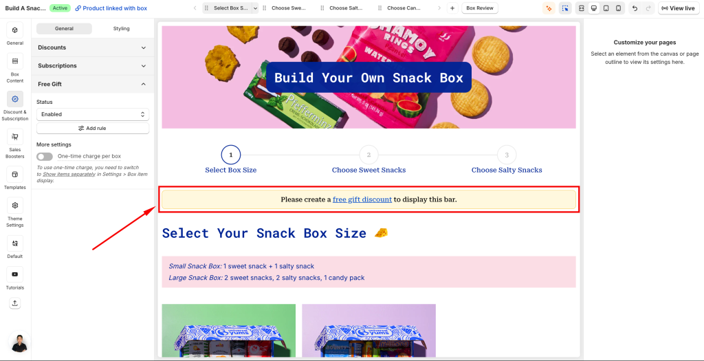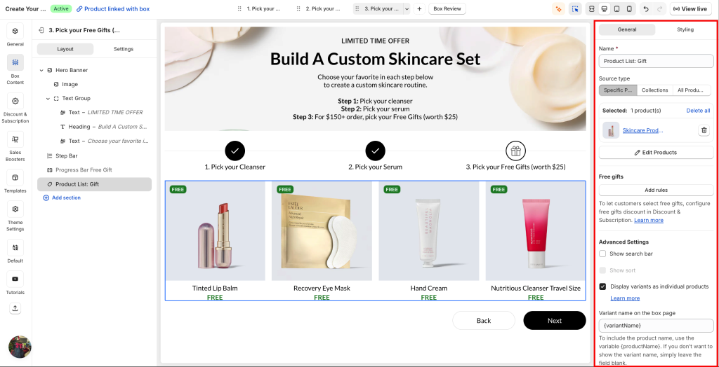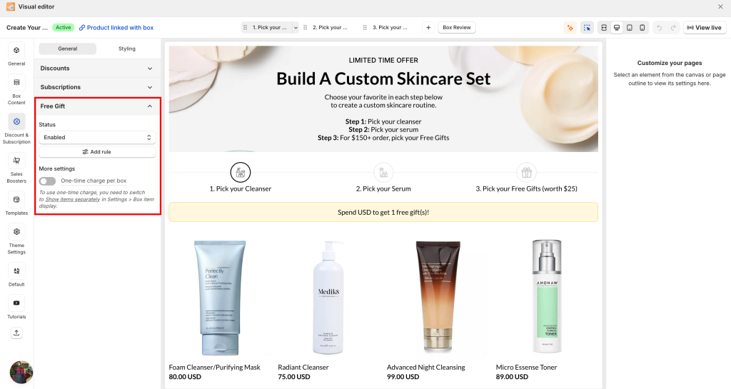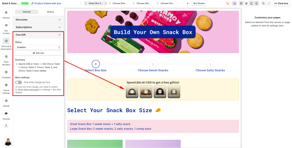 If you’re using a Tiered Quantity Box or a Predefined Box Size, structure your free gifts to guide customers toward higher tiers.