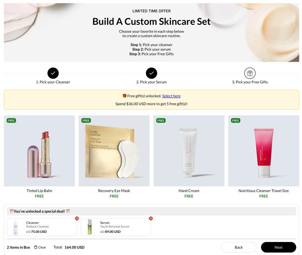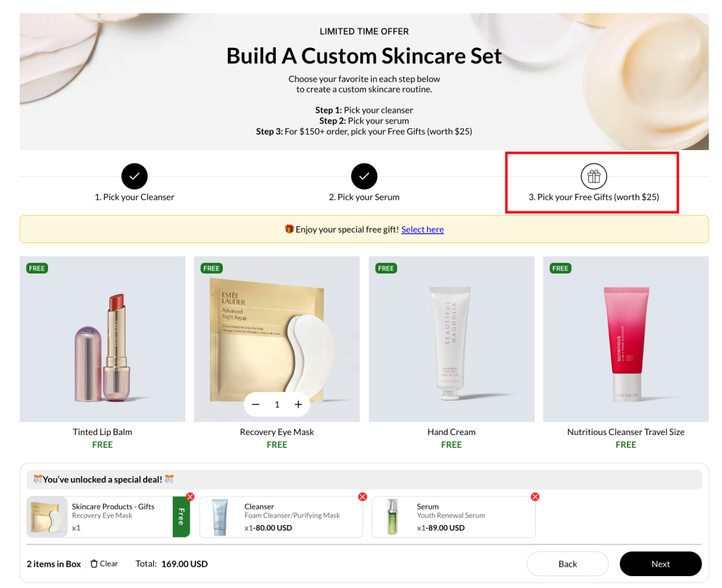 • Use clear goals like: “Add 4 items → Get a free gift”