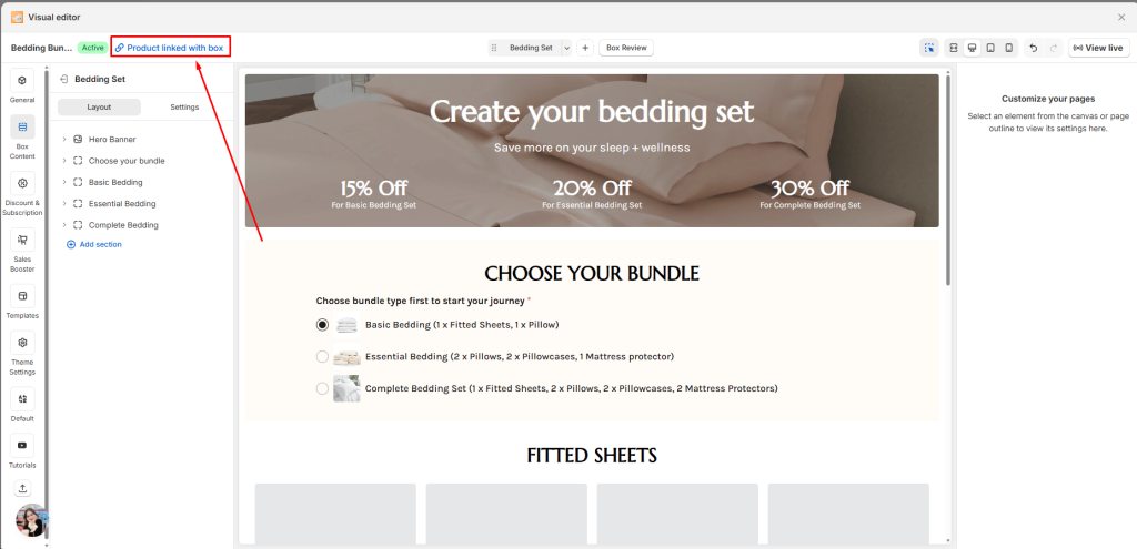 - Opening the bundle visual editor and clicking Product linked with box.