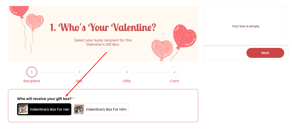 - Condition: The customer chooses the recipient of the gift box (for him or for her).