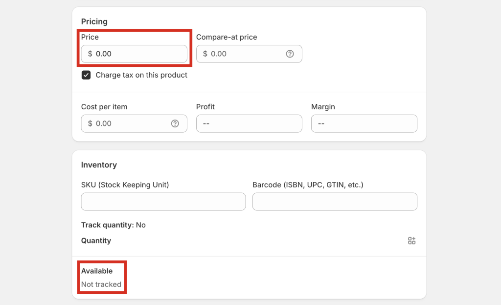 Manage inventory (optional): By default, inventory isn’t tracked. You can keep it that way or turn on inventory tracking (especially useful if you sell limited boxes). Just make sure to update stock through the app – not directly in Shopify product settings.