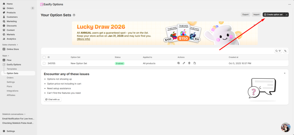 Upon accessing the app for the first time, you’ll be guided through a Quick Guide that conveniently directs you to the page for creating a new option set. Alternatively, from the app dashboard, simply click on the Let’s Create! button.