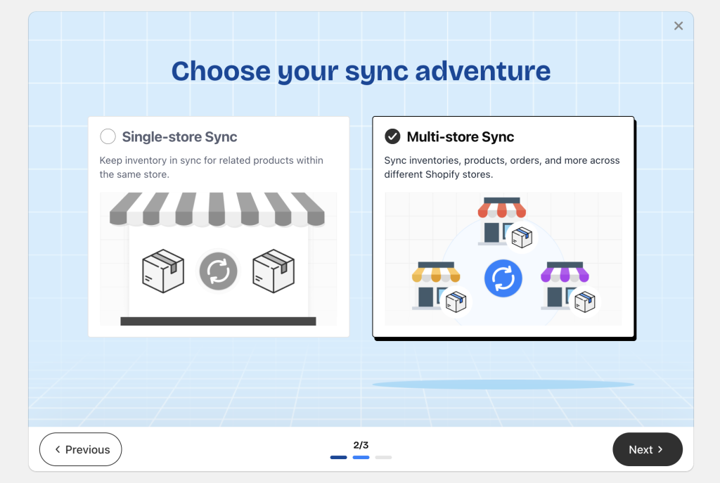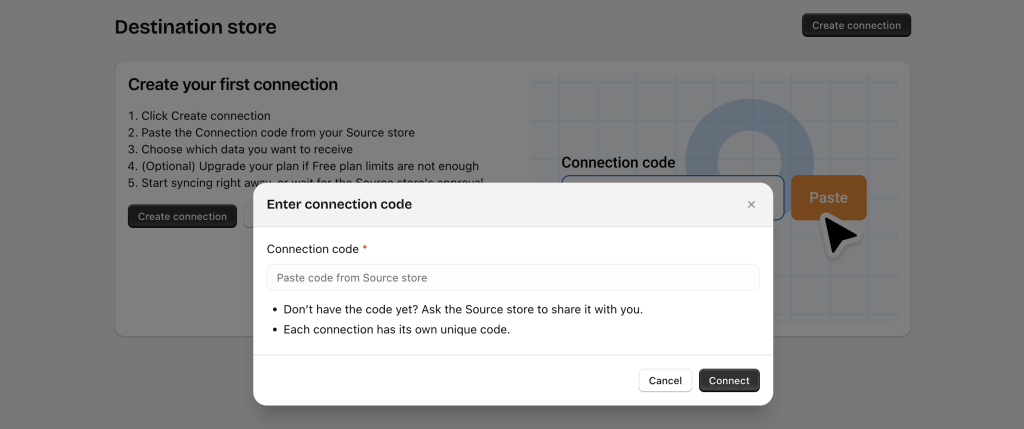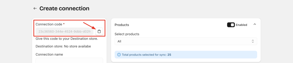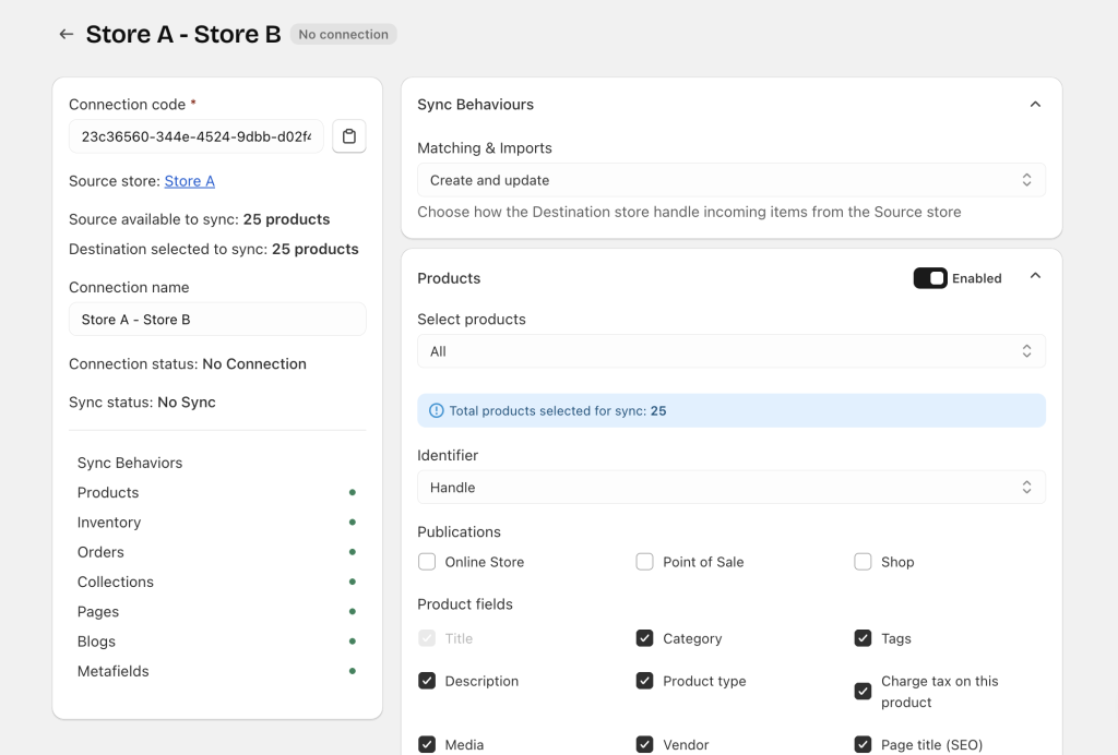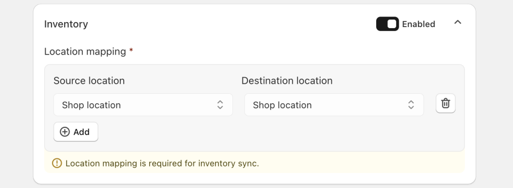If you plan to sync inventory, map the Source store’s location(s) to your Destination store’s location(s)