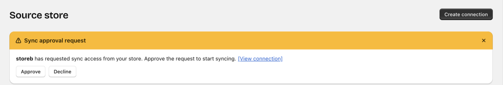 If the Source store uses automatic approval, the connection becomes active immediately.
