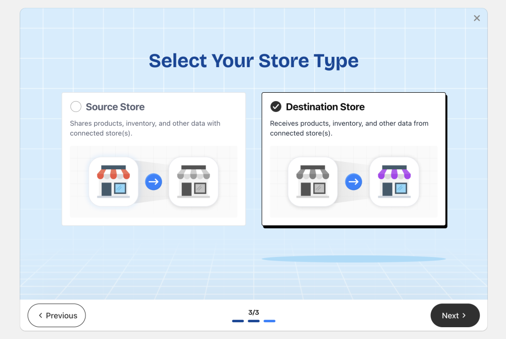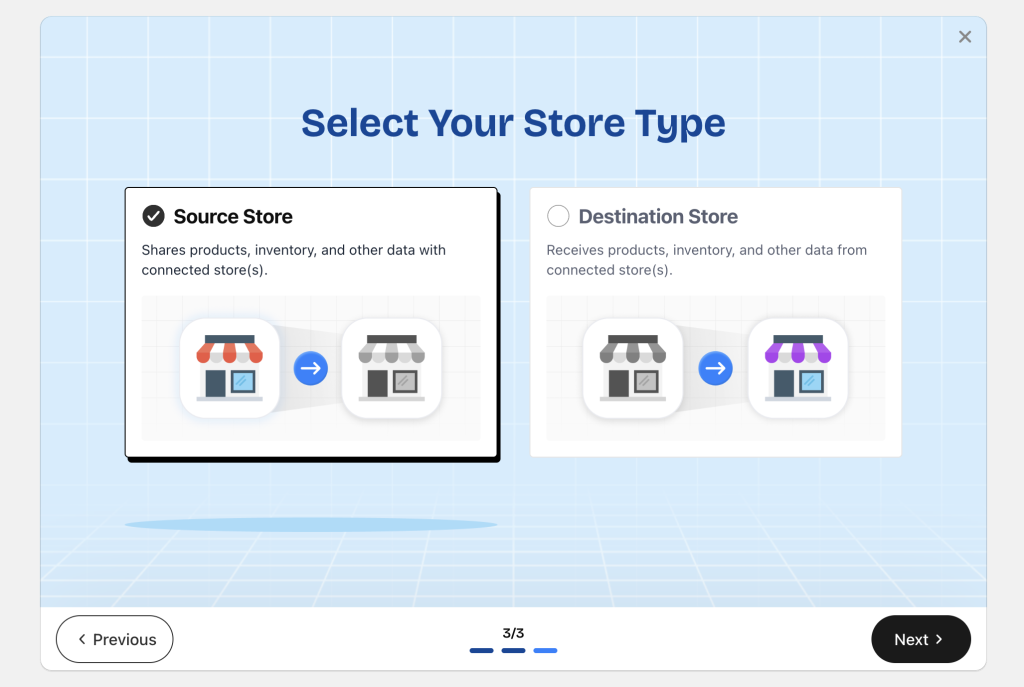 This selection cannot be changed later, so make sure this is the correct store to act as your Source.