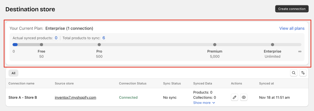 Unlike other apps that limit the number of connections, Easify Inventory Sync offers Unlimited Connections on all plans, including the Free plan.