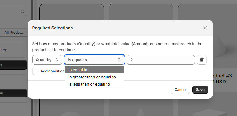 Control purchase requirements before customers can proceed: You can set rules that determine how many products or what total value customers must reach in their box before moving forward.