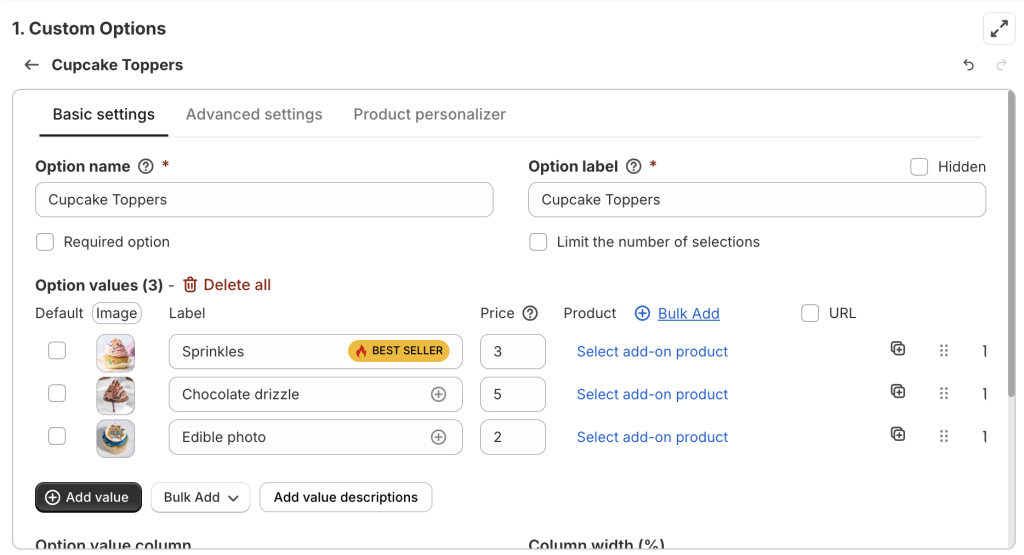 Step 1: Add your option and option values #