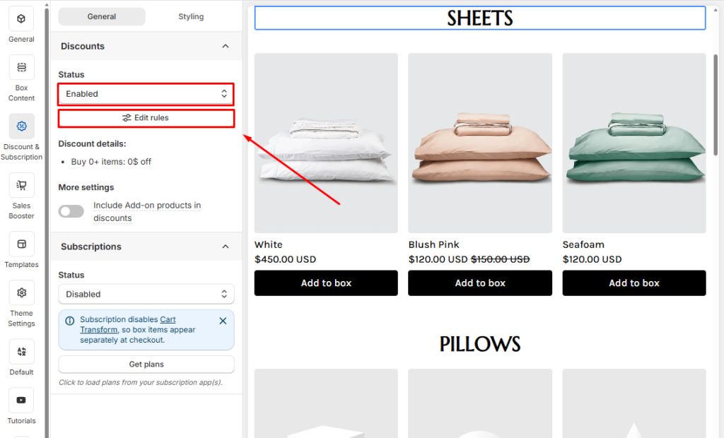 Click Edit Rules to open the discount popup.